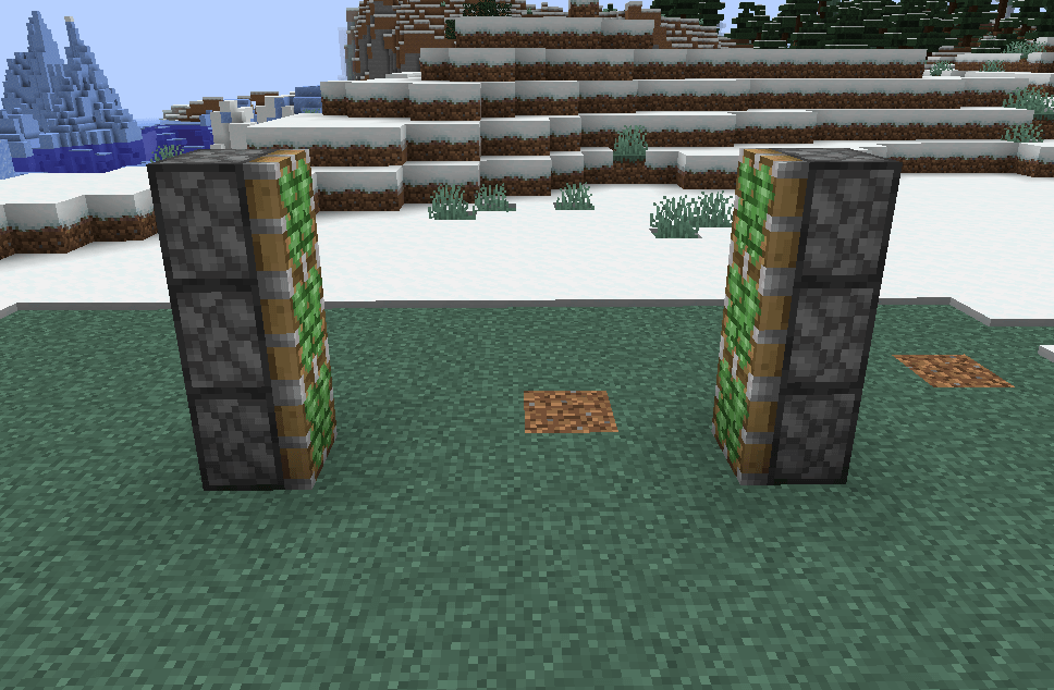 - Crea due torri di mattoncini al centro degli Sticky Pistons.