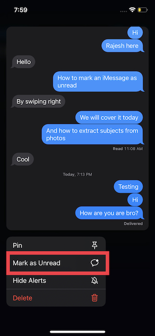 Se ti piacciono i gesti fluidi, sarai felice di sapere che l'app Messaggi di Apple offre un altro modo abbastanza rapido per contrassegnare un messaggio come non letto.