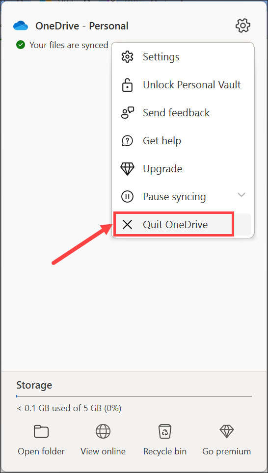 2. Metti in pausa la sincronizzazione di OneDrive