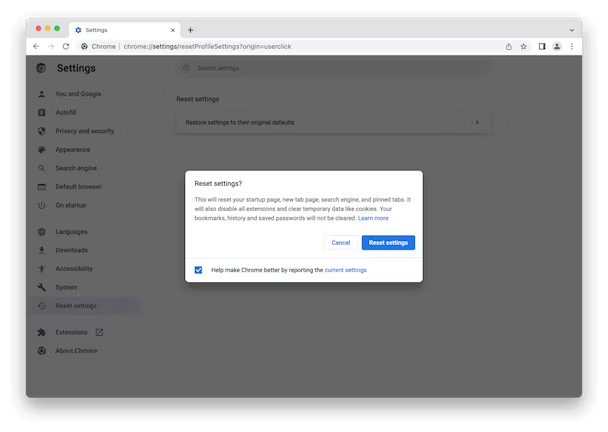 Metodo 4: ripristina le impostazioni del browser