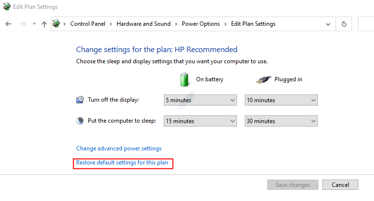 Passaggio 4:Seleziona l'opzione Modifica impostazioni piano accanto al piano di risparmio energia selezionato.