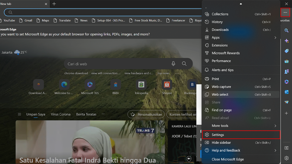 - Fare clic in alto a destratre puntiicona > scorri verso il basso > fai clicImpostazioni.