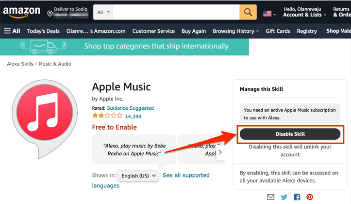 In alternativa, vai al, accedi al tuo account Amazon e selezionaDisabilita.