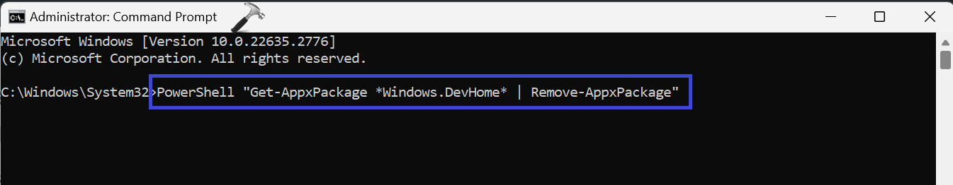 PowerShell "Get-AppxPackage *Windows.DevHome* | Remove-AppxPackage"