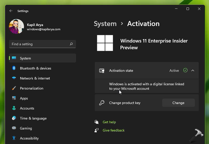 6.Dopo il riavvio, scoprirai che il tuo sistema ora è Windows 11 Enterprise edition. Questo è menzionato ovunque poiché ora è convertito all'edizione Enterprise. Tuttavia, se vai all'app Impostazioni, inSistema > Attivazione, scoprirai che il sistema non è più attivato. Ancora una volta, fai clic sul pulsante Cambia accanto a Cambia codice prodotto.