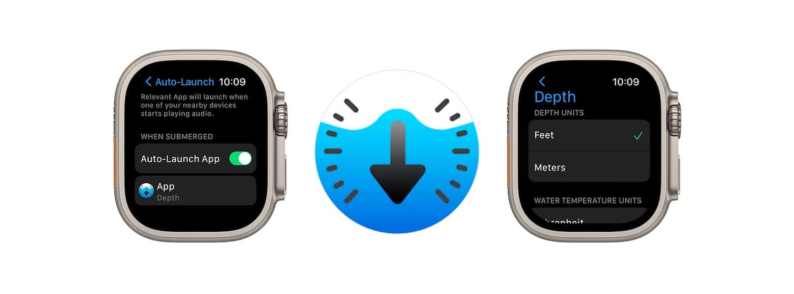 L'app Depth si apre e avvia una sessione di immersione quando l'orologio è immerso a una profondità di 1 metro o più. Gli utenti possono impostare l'avvio dell'app in alcuni modi: