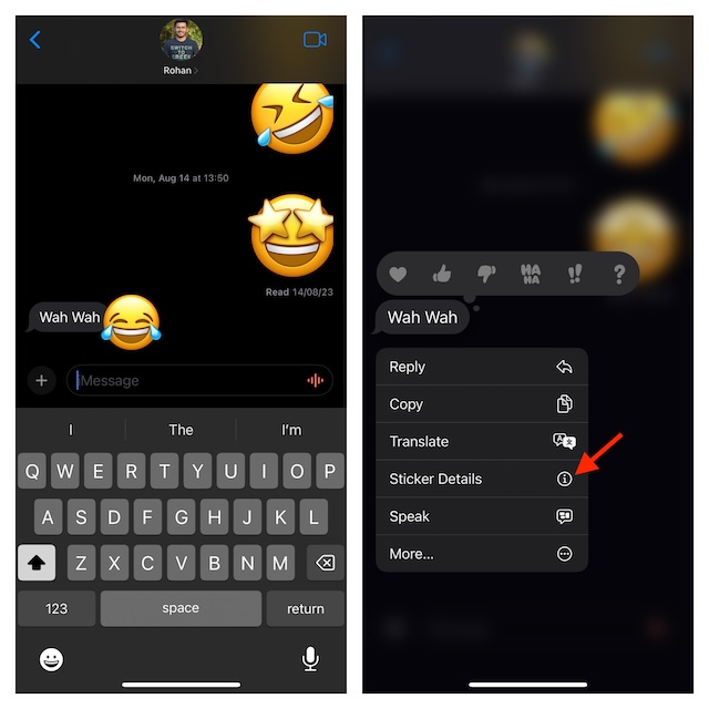 - Quindi, tieni premuta l'emoji, quindi scegli ilDettagli dell'autoadesivoopzione nel menu a comparsa.