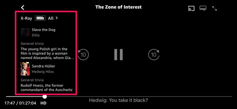 La funzione InSight è simile alla funzione X-Ray di Prime Video e funziona allo stesso modo. Tuttavia, a differenza della funzione X-Ray all'interno dell'app Prime Video che non solo mostra i nomi degli attori sullo schermo ma fornisce anche curiosità generali e fatti divertenti sul contenuto, InSight di Apple mostra solo i nomi degli attori e delle attrici e niente di più.