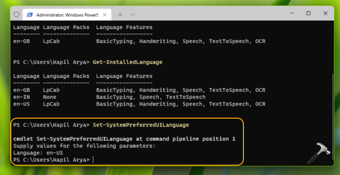 Set-SystemPreferredUILanguage
