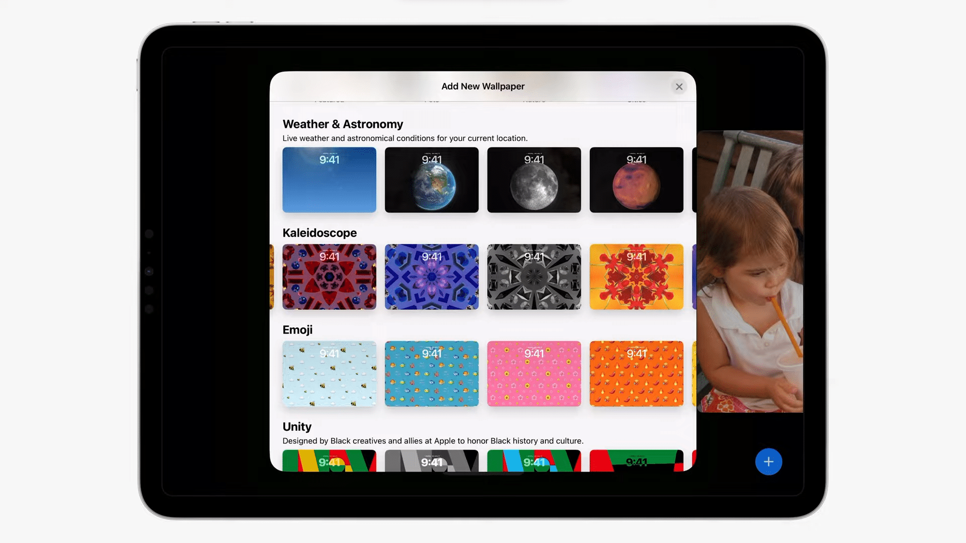 Inoltre, gli utenti possono selezionare sfondi dalla galleria Lock Screen che completano la grande tela dell'iPad e personalizzare l'aspetto della data e dell'ora con stili e colori di carattere espressivi. Possono anche creare i propri design utilizzando gli emoji e le combinazioni di colori preferiti.