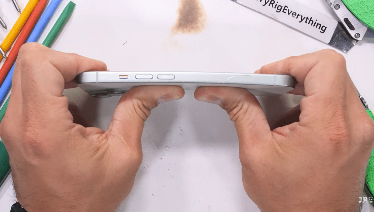 Zack Nelson di JerryRigEverything ha deciso di mettere alla prova l'iPhone 15 Plus, che condivide le stesse dimensioni del Pro Max ma è privo del telaio in titanio (e di un set completo di fotocamere posteriori). Sorprendentemente, il conveniente iPhone 15 Plus è rimasto indenne, non mostrando segni di compromesso strutturale anche se sottoposto a notevoli forze di flessione, tutto grazie alla sua struttura in alluminio.