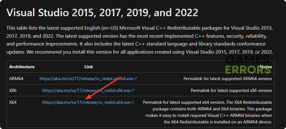 - Fare clic sul collegamento dell'architettura X64 per scaricarla.
