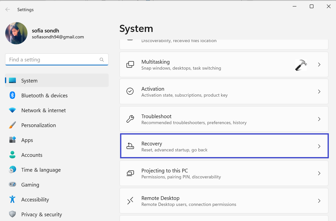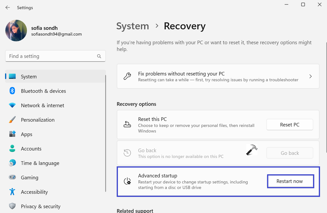 2. Ora vai su Recovery e scegli Riavvia adesso.