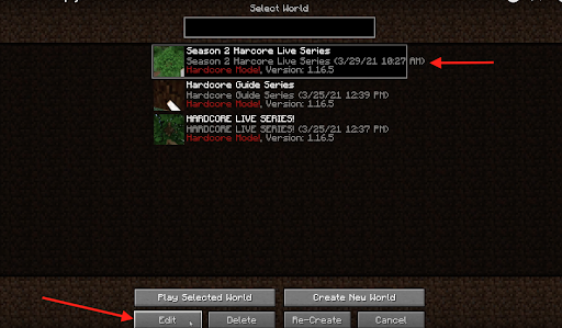 - Seleziona il mondo di cui desideri eseguire il backup e fai clicModificare.