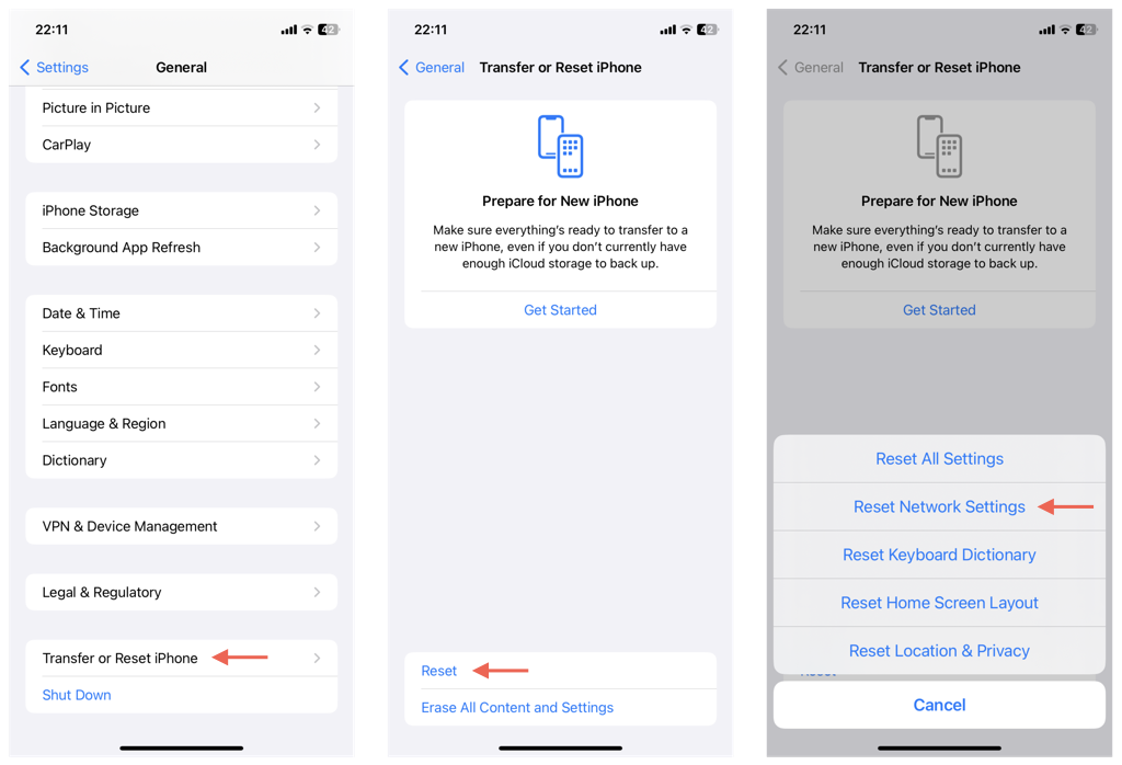 Il ripristino della configurazione di rete del telefono ripristina eventuali impostazioni cellulari danneggiate ai valori predefiniti di fabbrica. Non perderai dati durante il processo, ad eccezione delle reti Wi-Fi e delle password salvate.