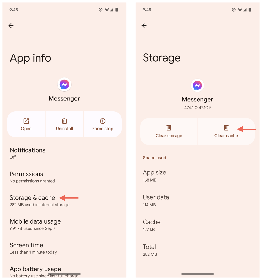 Svuota la cache dell'app Messenger