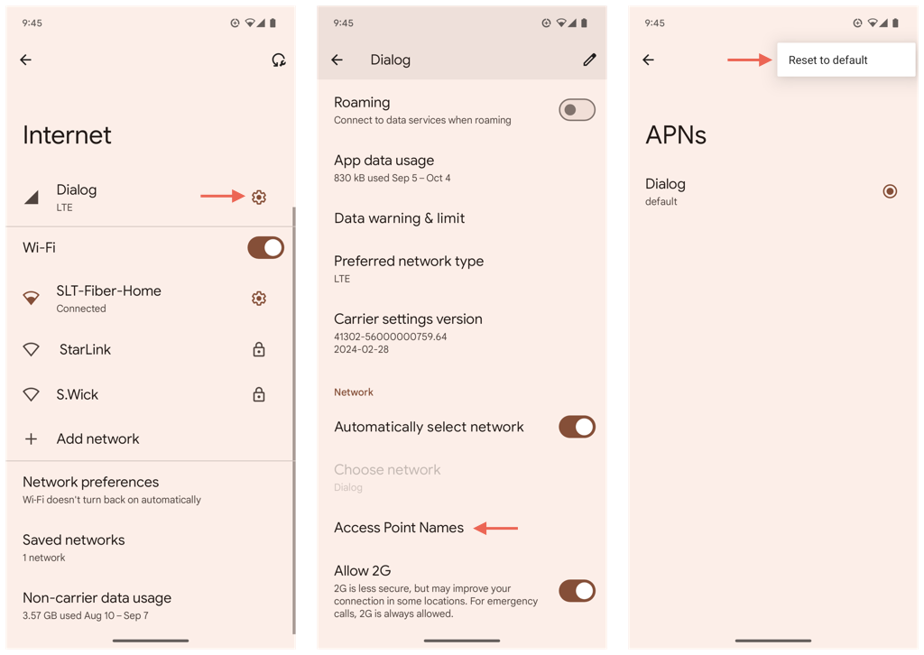 Le impostazioni APN del tuo telefono sono ciò che connette il dispositivo alla rete cellulare del tuo operatore. Riportali ai valori predefiniti per annullare eventuali modifiche che potrebbero causare problemi.
