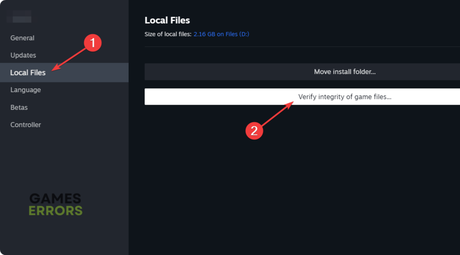 - Guarda il menu a sinistra e selezionaFile locali, quindi scegli diVerifica l'integrità dei file di gioco…