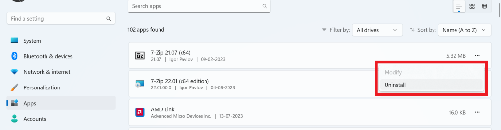 - Scorri l'elenco e disinstalla l'applicazione che causa un errore facendo clic sull'icona a tre punti proprio di fronte ad essa.