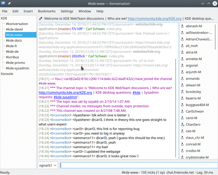 Konversation è la scelta migliore per le persone che si concentrano sul miglioramento della produttività. Diverse funzionalità distinguono questo client IRC per Linux dagli altri, inclusi gli strumenti On-Screen Display e Quick Buttons.