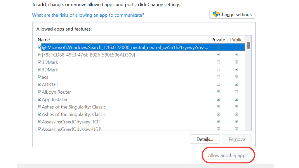 - Cerca Steam nell'elenco delle app e delle funzionalità consentite. Se non è presente, fai clicModifica impostazioni,