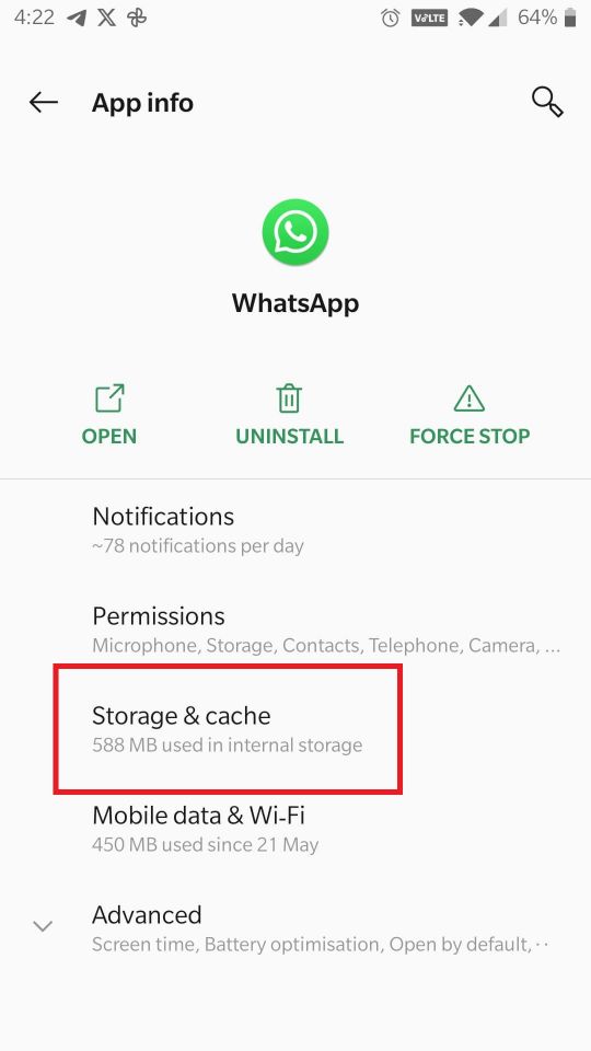 7. Cancella cache di WhatsApp (in Android)