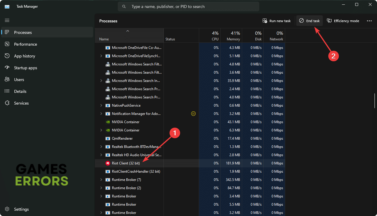3. Seleziona Riot Client e fai clic su Termina operazione.