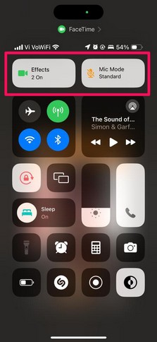 2.Ecco, lo faraitrova due tessere aggiuntivenella parte superiore dell'interfaccia utente del Centro di controllo. Questi riquadri vengono visualizzati ogni volta che apri Centro di controllo durante le chiamate normali o le videochiamate sul tuo iPhone.