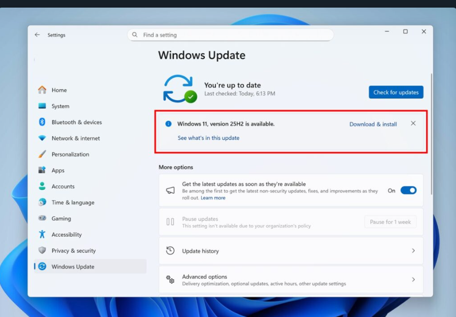 Nel caso in cui tu abbia deciso di aggiornare, dovresti installare l'aggiornamento correttamente. Puoi trovare istruzioni dettagliate qui perscaricare e installare l'aggiornamento Windows 11 2025 (versione 25H2), che è stato rilasciato ufficialmente da Microsoft e lì puoi ottenere le istruzioni dettagliate per scaricarlo e installarlo.