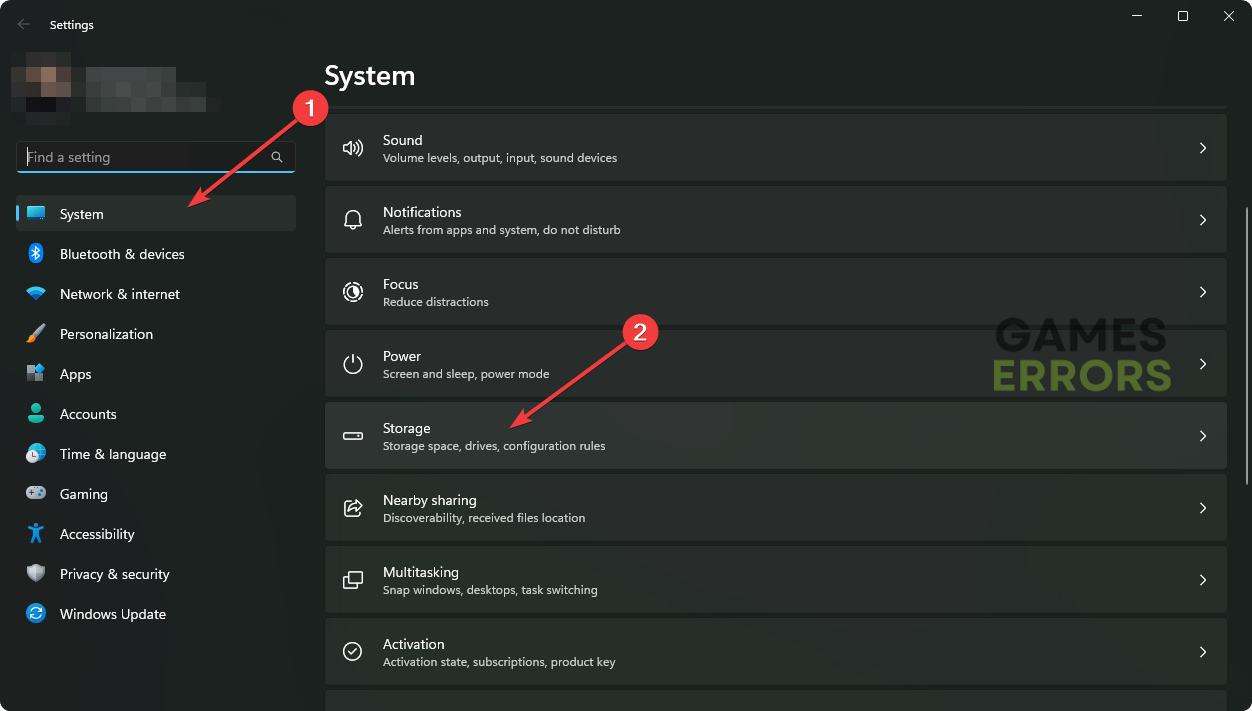 - Vai aSistemae quindi fare clic suMagazzinaggio.