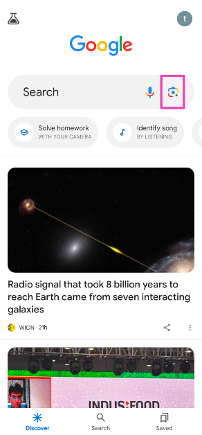 Passaggio 2:Colpisci ilIcona di Google Lensnell'angolo in alto a sinistra dello schermo.