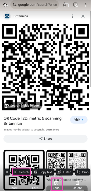 Passaggio 4:Google Lens lo faràscansiona il codice QRe visualizzare il risultato.