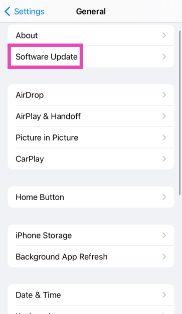 Passaggio 3:SelezionareAggiornamento del software.