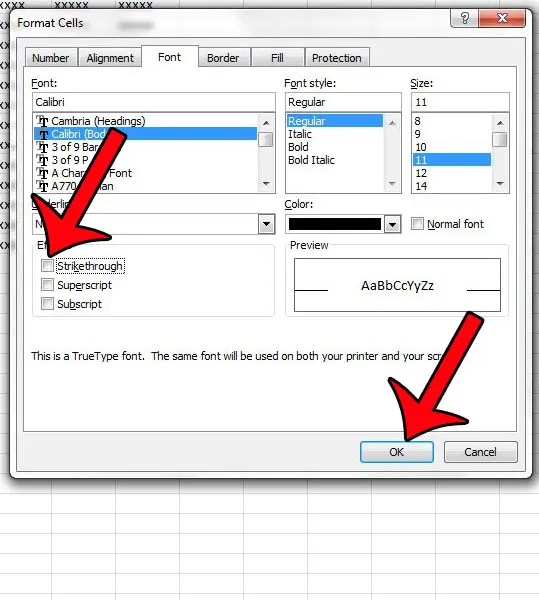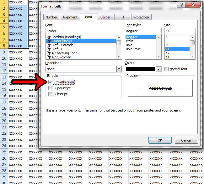 Passaggio 4: seleziona la casella a sinistra diBarrato, quindi fare clic suOKpulsante nella parte inferiore della finestra.