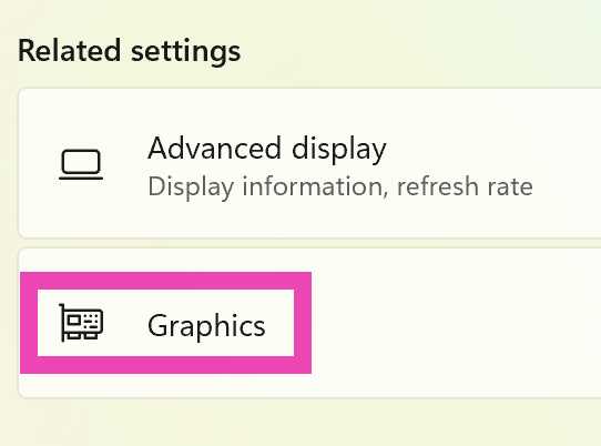 Vai aImpostazioni>Sistema>Display>Grafica, fai clic su "Modifica impostazioni grafiche predefinite" e attiva l'interruttore accanto a "Pianificazione GPU con accelerazione hardware".