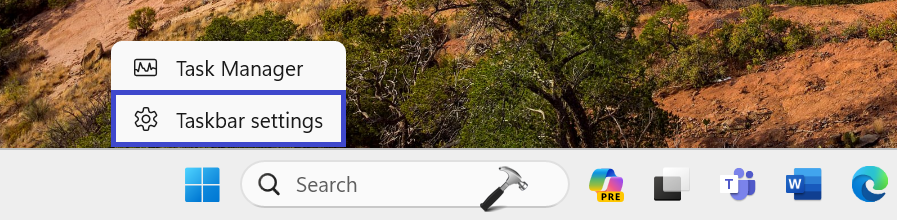 Por padrão, quando você abre o aplicativo Configurações, você é direcionado para a opção “Sistema"Seção. Mas se você deseja acessar especificamente as configurações da barra de tarefas, aqui está um truque rápido: basta clicar com o botão direito na barra de tarefas e escolher “Configurações da barra de tarefas.”