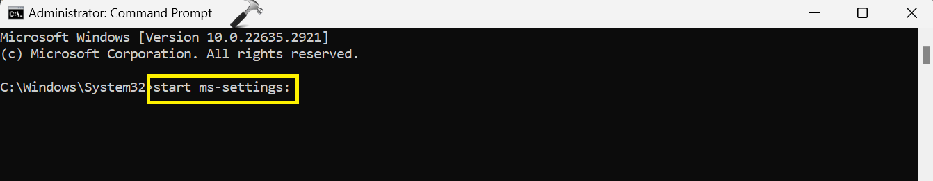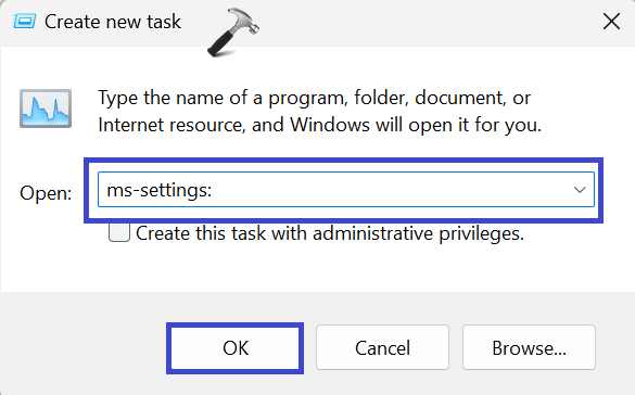 3. Uma caixa de diálogo aparecerá. Tipo "configurações ms”E clique em OK.
