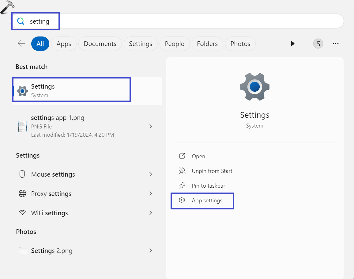2. Agora, clique em “Configurações do aplicativo”Para abrir o aplicativo Configurações.
