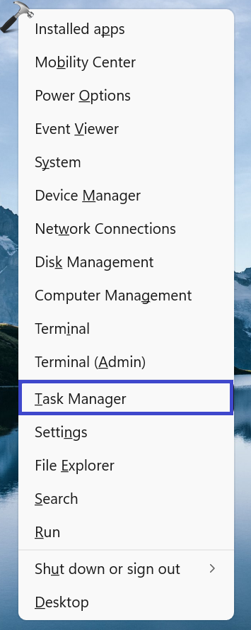 1. Pressione a tecla Windows + X. Selecione “Gerenciador de tarefas“.