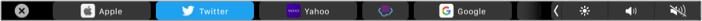Ao iniciar o Safari, a Touch Bar ganha uma nova vida, ao que parece. Você verá várias opções que permitem abrir novas guias, iniciar rapidamente sites favoritos, navegar pelas guias abertas, pesquisar, etc.