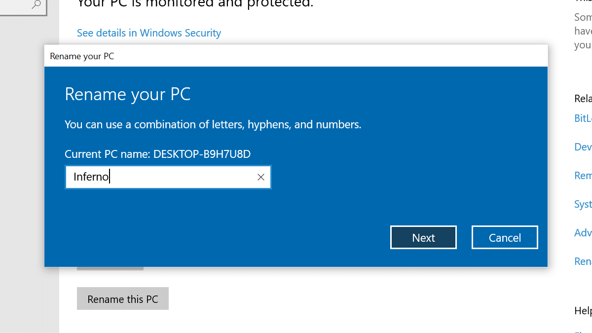 - Confirme um novo nome para o seu computador.