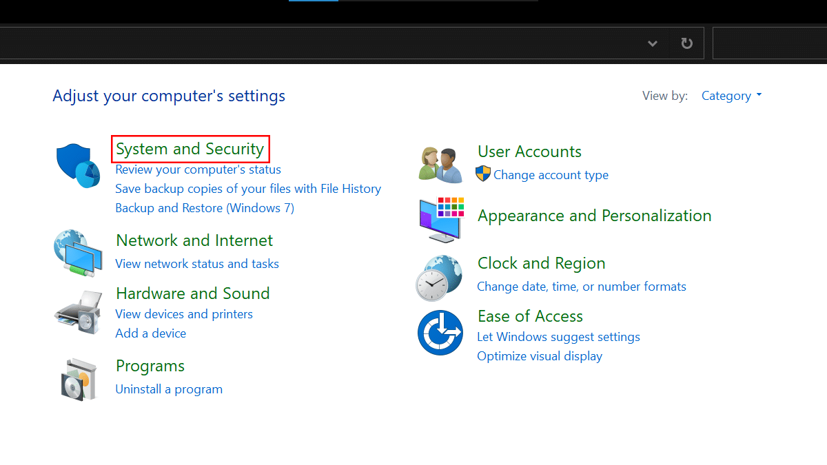 - AbrirPainel de controle> clique emSistema e Segurança.