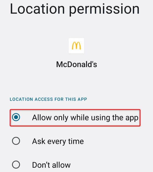 McDonald's é um aplicativo de entrega de comida e requer acesso aos dados de localização do seu telefone para atender seus pedidos. Se você negou o acesso de sua localização ao aplicativo, conceda esse acesso ao aplicativo para resolver os problemas do aplicativo.