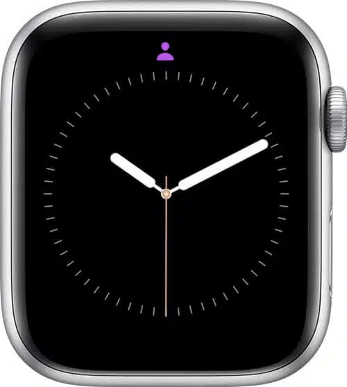 A Lua Crescente aparece quando você ativa o modo Não perturbe diretamente no Centro de Controle do seu Apple Watch ou do iPhone emparelhado se as configurações Compartilhar foco entre dispositivos estiverem ativadas. Uma vez ativado, o modo Não perturbe silencia todas as chamadas e outros alertas; no entanto, os alarmes ainda tocarão.