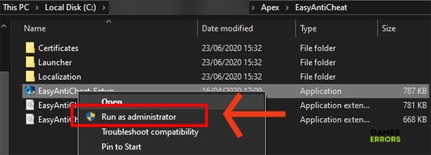 2. Localize oEasyAntiCheat_Setup.exearquivo e execute-o como administrador.