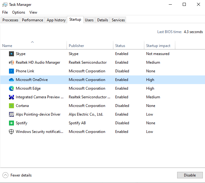 - NoComeceaba, procure por todos osHabilitadoitens de inicialização. Selecione cada um deles e escolhaDesativaristo. (Lembre-se de quais aplicativos/programas você desativou).