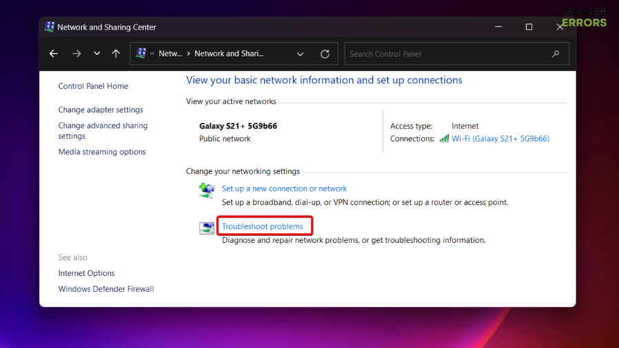- Sob oAltere suas configurações de redeseção, clique no botão azul Solucionar problemas.