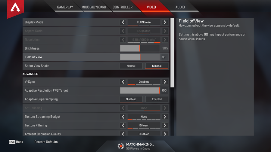 - Vá para as configurações de vídeo do jogo.