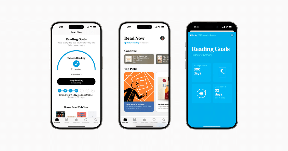 A Apple capacita ainda mais os leitores a definirem metas de leitura ambiciosas para o próximo ano. Ao ativar a opção “Metas de leitura” no aplicativo Configurações, os usuários podem acessar estatísticas abrangentes, incluindo média mensal de minutos de leitura, para acompanhar seu progresso e transformar suas aspirações de leitura em realidade.