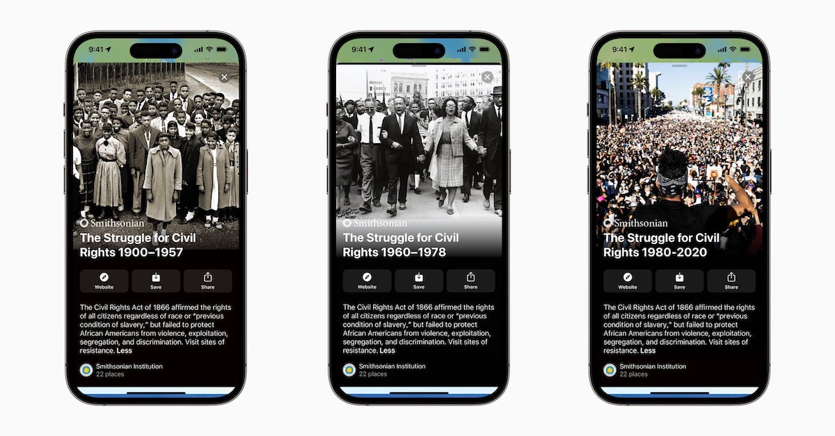 - Criado pelo Smithsonian, recurso Mapsuma série de guiasdestacar marcos importantes relacionados à luta pelos direitos civis ao longo do século passado (1900-1957, 1960-1978, 1980-2020) para que os usuários possam aprender sobre pessoas, lugares e eventos que moldaram a história da nação.
